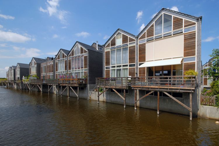 verbinden. Aan de buitenzijde worden raampartijen afgedekt met jaloezieën. Een gevelbekleding uit hardhout en donkere baksteen completeert het geheel. Oude typologieën in een nieuwe jas.